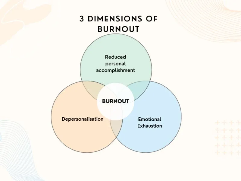 O burnout envolve então 3 dimensões/sintomas principais: